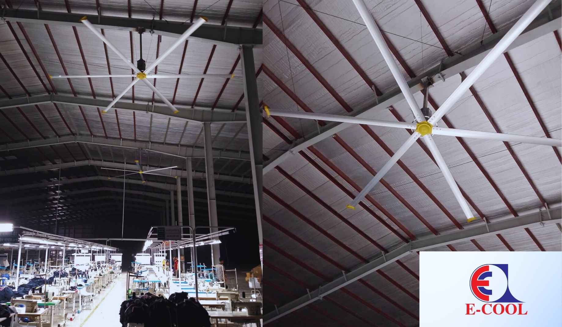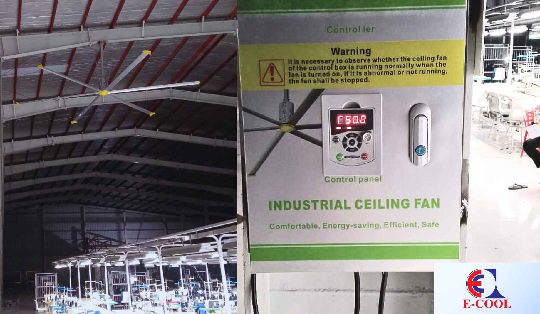 E‑COOL International Ltd. proudly supplied and delivered 22 Pieces high-efficiency HVLS Ceiling Fan (Model: ECIL‑7300) to Pretty ECO Apparels Village Ltd., a concern of PRETTY GROUP. Designed for large-scale industrial ventilation, this advanced ceiling fan improves indoor airflow and ensures energy-efficient cooling for expansive manufacturing environments.