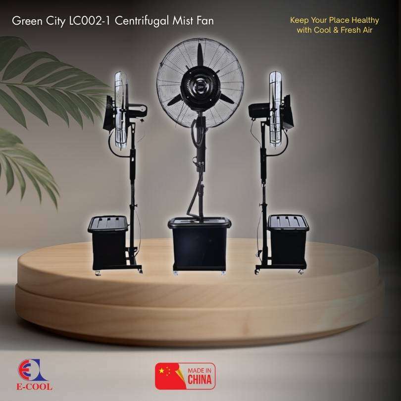 Keep cool and comfortable with the 26″ Green City LC002-1 mist fan. Designed for powerful performance with 3-speed control and 90° oscillation, it delivers up to 138 m³/min airflow and cools areas up to 20 m³, lowering temperatures by 2°C–4°C. With a 40L water tank and adjustable atomization up to 5kg/h, this fan is ideal for indoor and outdoor cooling. Compatible with 220V/110V, 50/60Hz, and running on just 260W, it’s both efficient and effective.