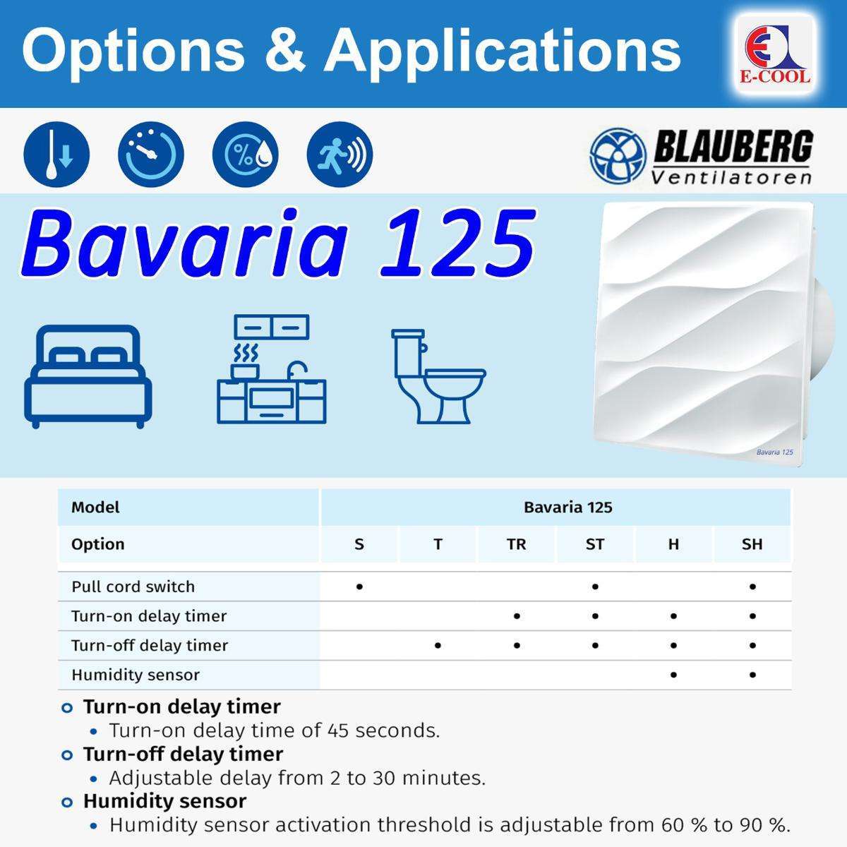 Product details of Blauberg Bavaria 125 Exhaust Fan – High-Performance Ventilation for Bathrooms