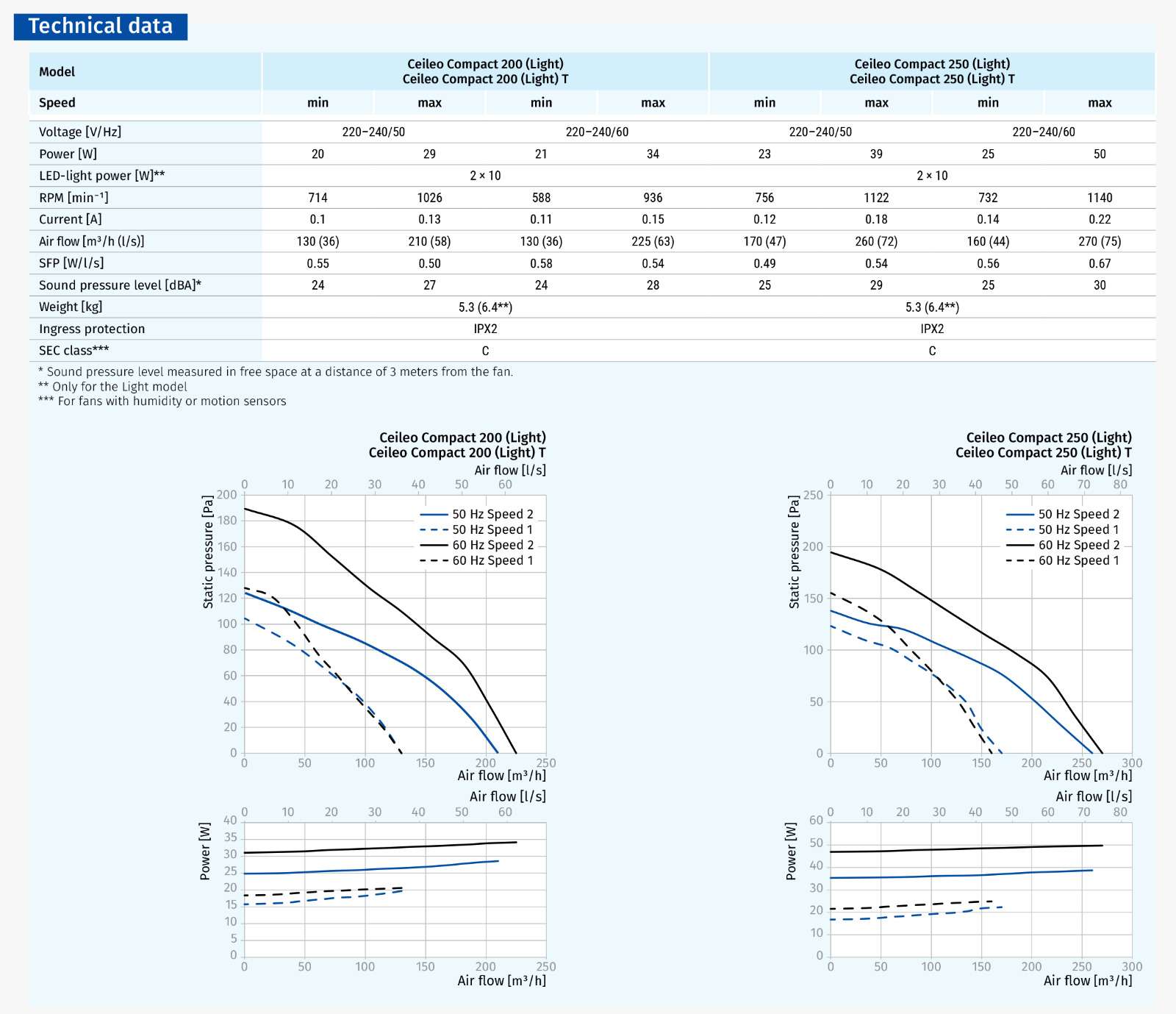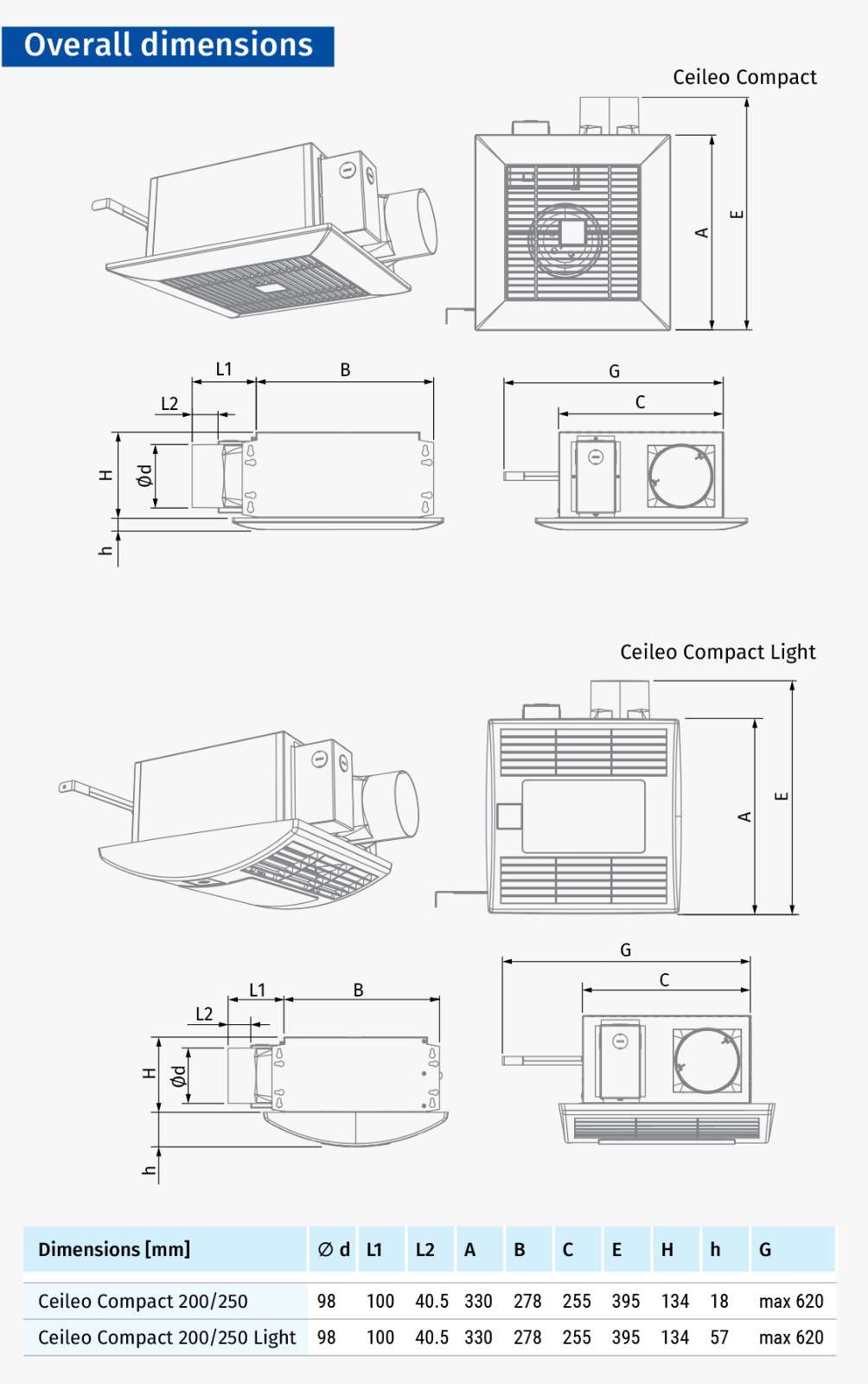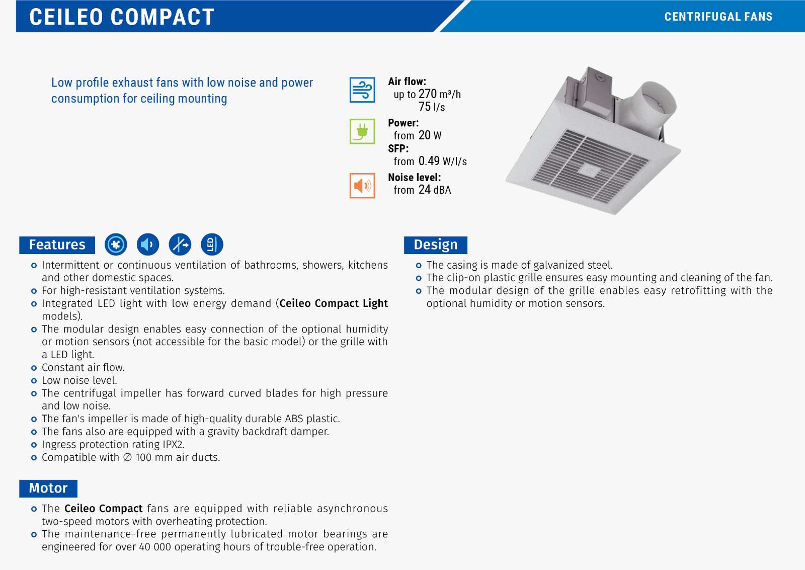 The new Ceileo Compact, Low profile exhaust fans with low noise and power consumption for ceiling mounting. The Ceileo Compact fans are equipped with reliable asynchronous two-speed motors with overheating protection.