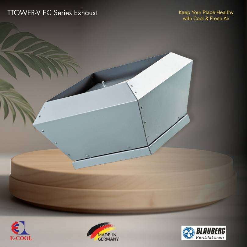 The TOWER-V EC Series is a high-performance, roof-mounted exhaust fan line designed to provide efficient and energy-saving ventilation in commercial, industrial, and residential applications. These fans are specifically engineered for vertical ventilation shafts and are suitable for any roof type.
